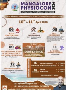 The Principal, staff, and students of Aditya College of Physiotherapy participated in International Physiotherapy Conference MANGALORE PHYSIOCON 2026 , organized by the South Canara Physiotherapy Teachers Association on 10th and 11th April 2026 at the Dr. TMA Pai International Convention Centre, Mangalore.