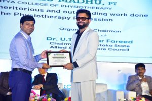The conference was graced by eminent dignitaries including Dr. U.T. Ifthikar Fareed, Chairman, Karnataka State Allied and Healthcare Council; Dr. Yagna Unmesh Shukla, Chairperson, National Commission for Allied & Health Care Professions, Ministry of Health and Family Welfare, Government of India; Dr. Sharanprakash Patil, Hon’ble Minister for Medical Education, Skill Development, Entrepreneurship & Livelihood, Government of Karnataka; Sri Dinesh Gundu Rao, Minister of Health and Family Welfare, Govt of Karnataka; Dr. Bhagavan B.C., Vice Chancellor, RGUHS, Karnataka; and Dr. Sanjeev K. Jha, President, Indian Association of Physiotherapist.